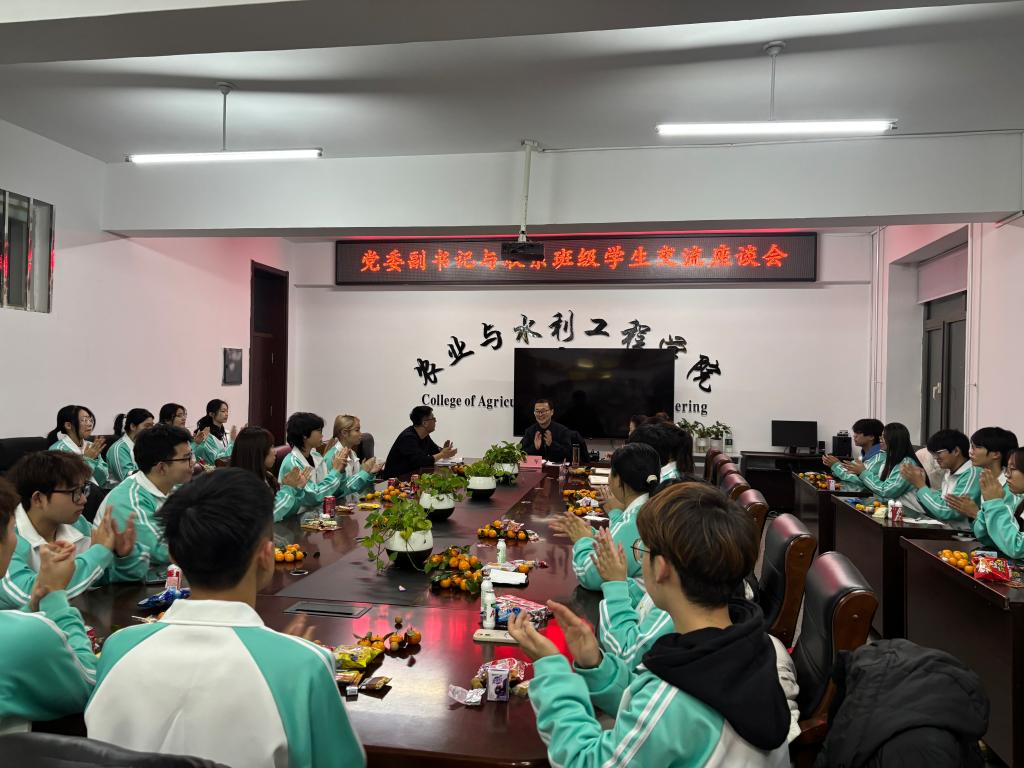 12月25日下午,黨委副書記姜軍在知新樓三樓會議室與所聯(lián)系的農(nóng)業(yè)與水利工程學(xué)院2025級農(nóng)學(xué)一班學(xué)生開展交流座談會。農(nóng)業(yè)與水利工程學(xué)院黨總支書記呂霞主持會議,院長周利軍、輔導(dǎo)員趙丹參會。
