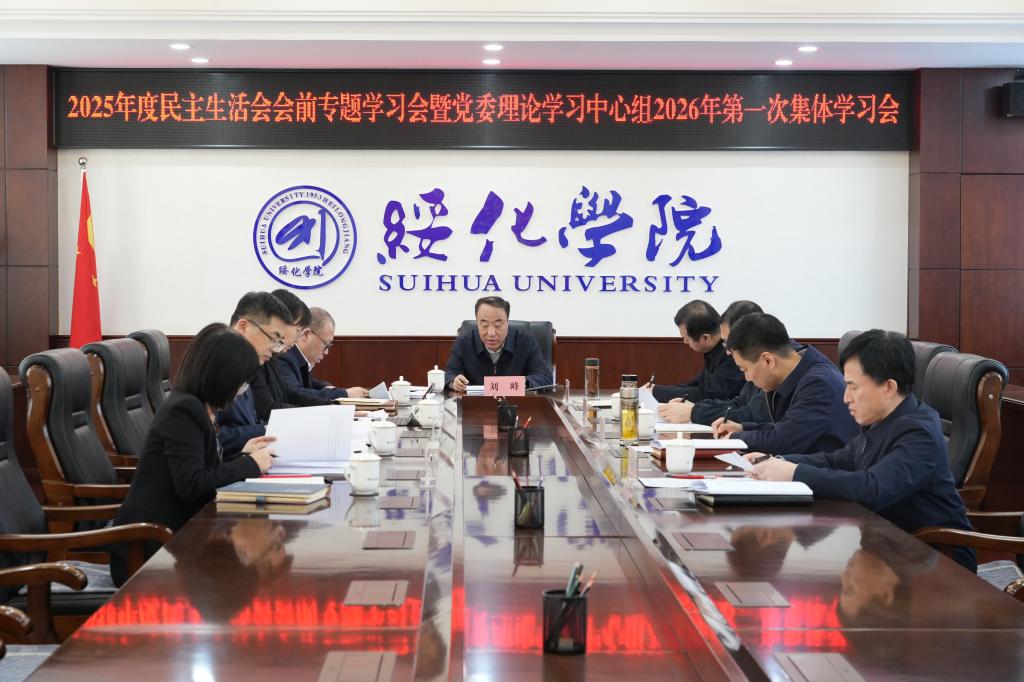 1月9日下午,學校在致遠樓310會議室召開2025年度民主生活會會前專題學習會暨黨委理論學習中心組2026年第一次集體學習會,深入學習習近平總書記在中央政治局民主生活會上的重要講話精神、習近平總書記關于黨的建設的重要思想、關于黨的自我革命的重要思想以及關于加強黨的紀律建設、作風建設的重要論述以及黨的二十屆四中全會精神,為開好黨委領導班子2025年度民主生活會打牢思想基礎。黨委書記劉峰主持會議并講話。黨委理論學習中心組成員盧百勝、姜軍、鄭方明、孫永剛、劉鵬程、夏艷霞出席,院長李奇楠、副院長馬春華列席。