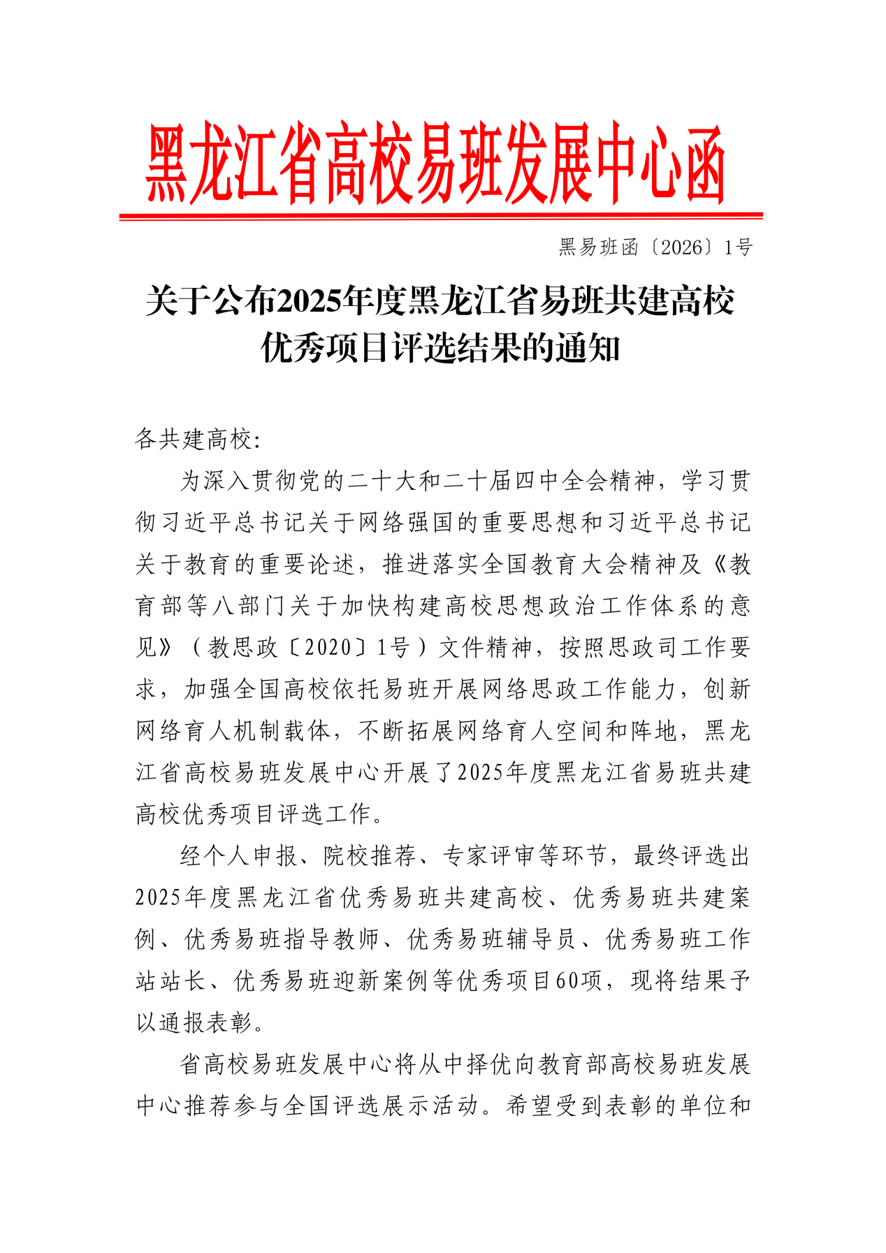 新年伊始,捷報再傳。近日,黑龍江省高校易班發(fā)展中心印發(fā)《關(guān)于公布2025年度黑龍江省易班共建高校優(yōu)秀項目評選結(jié)果的通知》,本次評選共有來自全省高校的60個優(yōu)秀項目獲獎,我校繼上一年度再次實現(xiàn)全部6個優(yōu)秀項目“大滿貫”。其中,我校榮獲“黑龍江省優(yōu)秀易班共建校”、《“一牽引四融合”易班建設(shè)模式》榮獲“黑龍江省高校優(yōu)秀易班共建案例”、學(xué)生工作部陶立志和劉丹同志分別榮獲“優(yōu)秀易班指導(dǎo)教師”和“優(yōu)秀易班輔導(dǎo)員”、音樂學(xué)院2023級學(xué)生馬嘉琦榮獲“優(yōu)秀易班工作站站長”、我校《數(shù)智啟航“易”路相伴—綏化學(xué)院易班一站式迎新案例》榮獲“優(yōu)秀易班迎新案例”。