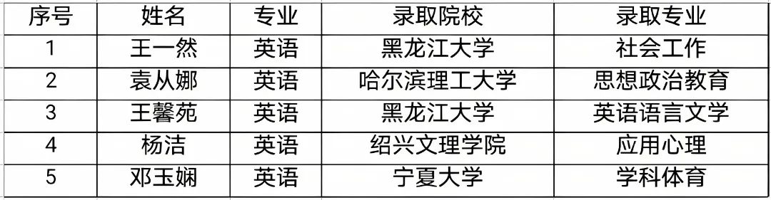“千淘萬漉雖辛苦,吹盡狂沙始到金。”在考研這條荊棘與繁花并存的征途上,2021級英語2班的學子們并肩作戰(zhàn),砥礪奮進,27名同學中5人成功考取碩士研究生,考研升學率達18.52%。