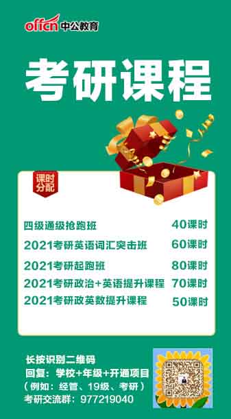 此課程包含300個課時,主要包含:四級通級搶跑班(英語)、2021考研英語詞匯突擊班(英語)、2021考研起跑班(公共課+專業(yè)課)、2021考研政治+英語提升課程(公共課)、2021考研政英數(shù)提升課程(公共課)。主要適合:準(zhǔn)備考考研的考生。