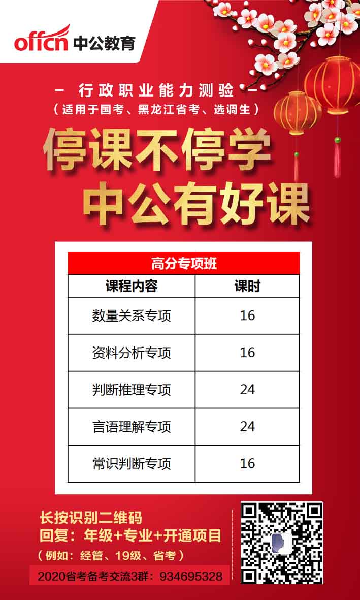 此課程名稱為高分專項班,包含96個課時,主要包含:數(shù)量關(guān)系專項、資料分析專項、判斷推理專項、言語理解專項、常識判斷專項。主要適合:準(zhǔn)備考20省考的考生。
