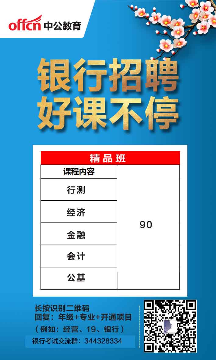 此課程名稱為銀行精品班,包含90個課時,主要包含:行測、經(jīng)濟(jì)、金融、會計、公基(附:計算機\市場營銷\管理\英語)。主要適合:準(zhǔn)備考銀行招聘的考生。
